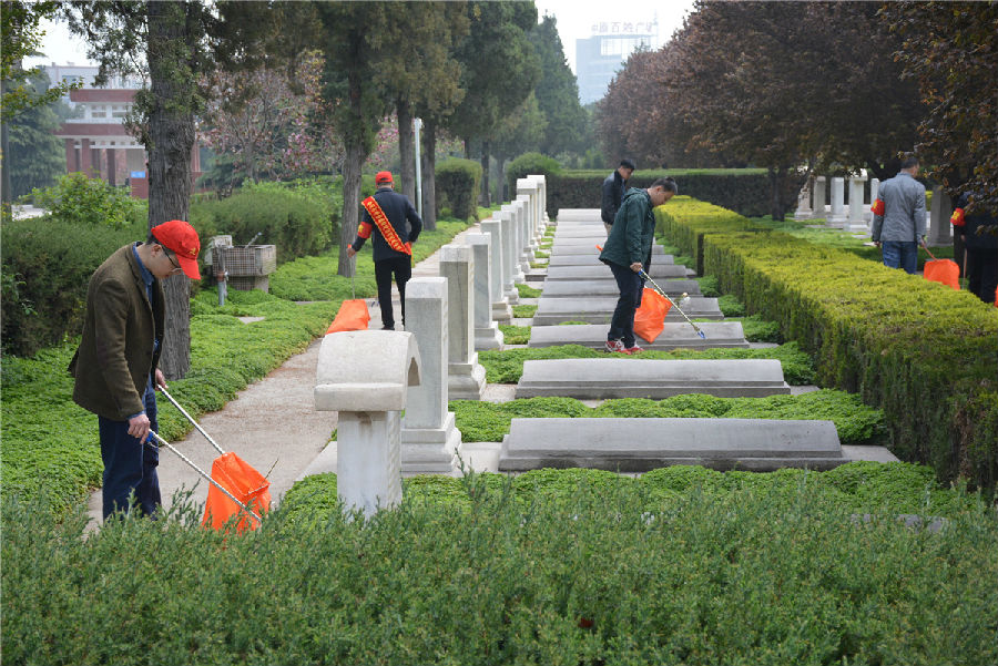 三、開展“倡議文明緬懷,減少廢棄污染”拾撿垃圾志愿服務(wù)活動。緬懷先烈活動結(jié)束后,市建投公司志愿者們在烈士陵園內(nèi)開展“倡議文明緬懷,減少廢棄污染”拾撿垃圾志愿服務(wù)活動。每位志愿者都手持垃圾鉗,認(rèn)真將散落在紀(jì)念碑前以及隱藏在雜草中的廢棄鮮花、飲料瓶、紙張等垃圾拾撿起來放入提前準(zhǔn)備好的垃圾袋中。活動持續(xù)一個(gè)小時(shí),志愿者們在祭奠先烈的同時(shí)以自己的實(shí)際行動表達(dá)崇敬之情,并倡導(dǎo)以獻(xiàn)一束花、敬一杯酒、植一棵樹、清掃墓碑等方式寄托哀思,將祭拜逝者的傳統(tǒng)習(xí)俗以更加環(huán)保、健康、安全、文明的方式表達(dá),營造文明祭祀的良好氛圍。