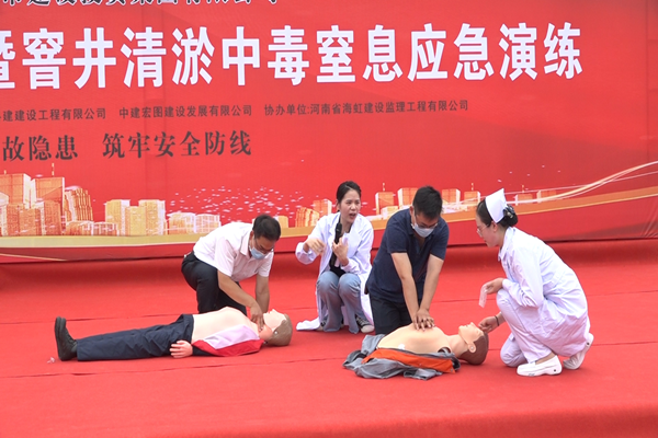 五是開展應急演練活動。6月23日下午,集團公司市政建設管理中心在杏賈路市政道路施工現場開展一次窨井中毒窒息應急救援演練活動,參加人員共計100余人,涉及公司所有在建市政工程項目參建單位。演練模擬污水井清淤作業意外中毒為背景展開,并邀請鄭大一附院兩名專家進行急救知識講解和心肺復蘇教學,取得了非常好的效果